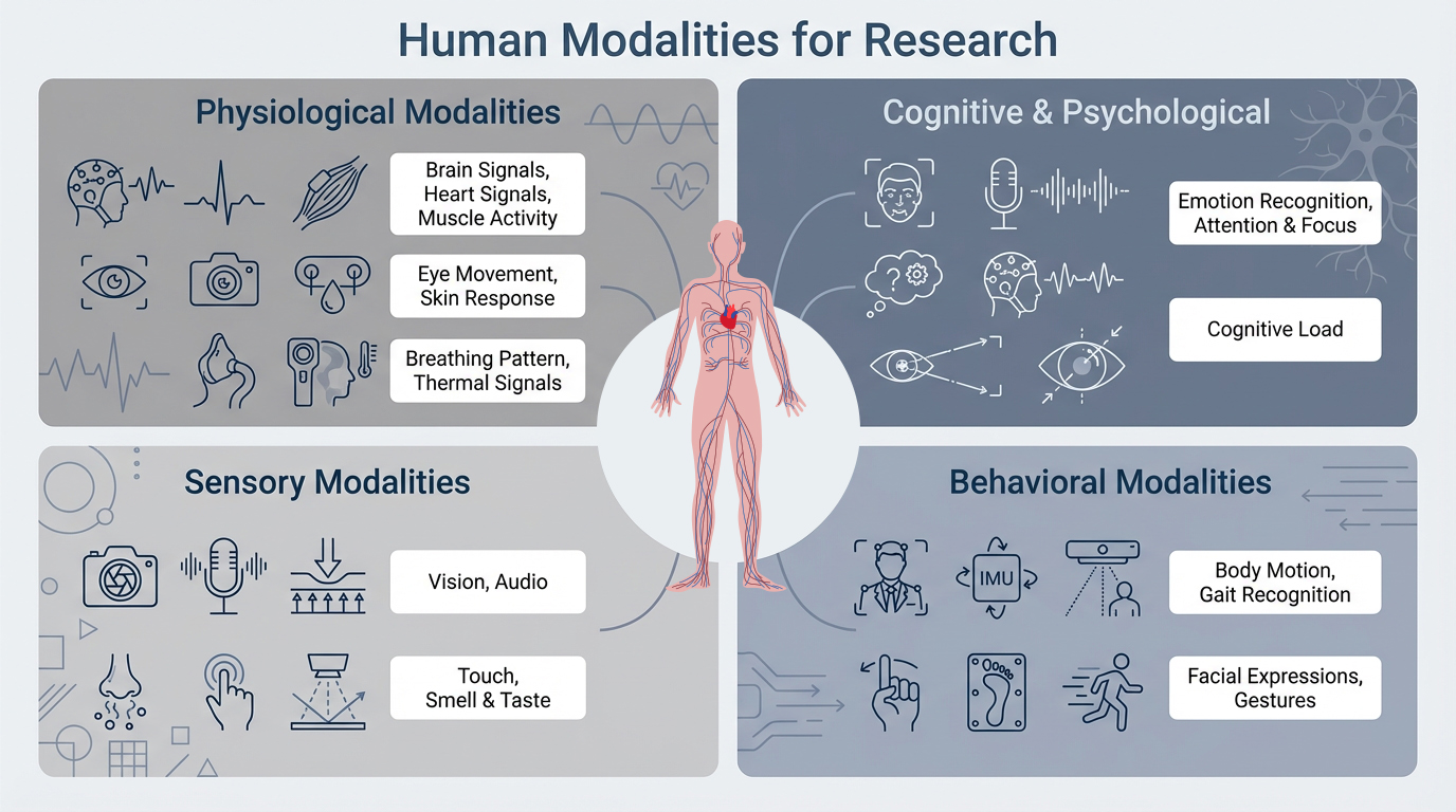 The Multimodal Lab is a state-of-the-art research space dedicated to advancing human-centric data collection and AI innovation. At its core, the lab focuses on understanding human behavior and interaction by capturing data from multiple human-centric modalities.
