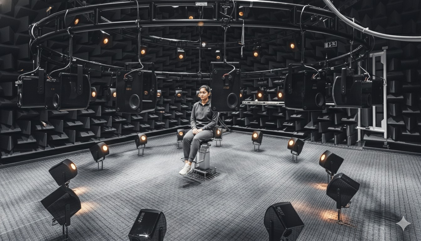 The Multimodal Data Collection Lab consists of controlled anechoic capture environment designed for high-fidelity, synchronized acquisition of human-centric data. The lab features a dedicated capture chamber equipped with a multi-camera, multi-sensor setup enabling 360-degree and 3D data capture of human subjects. High-speed cameras, precision microphones, and additional sensing modalities are spatially arranged and synchronized using advanced hardware-based techniques to ensure precise temporal alignment across data streams. This integrated infrastructure supports the creation of state-of-the-art multimodal and multiview datasets for industrial applications and the development of next-generation AI systems.